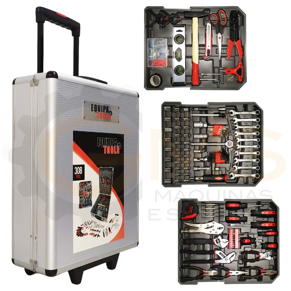 Maleta De Ferramentas 308 Peças Para Uso Manual Com Rodas