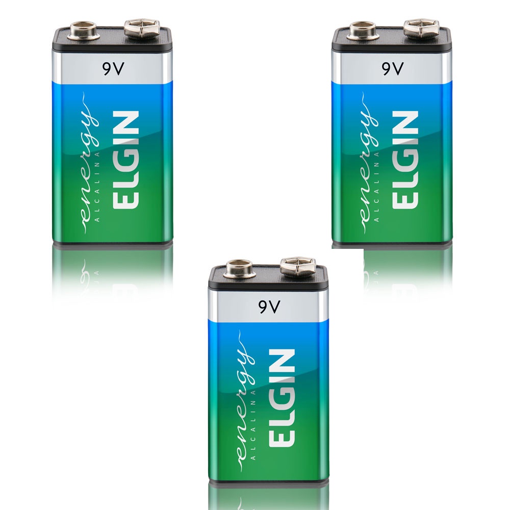 Kit 3 Bateria 9v Alcalina 6lr61 Elgin Inmetro - Blister