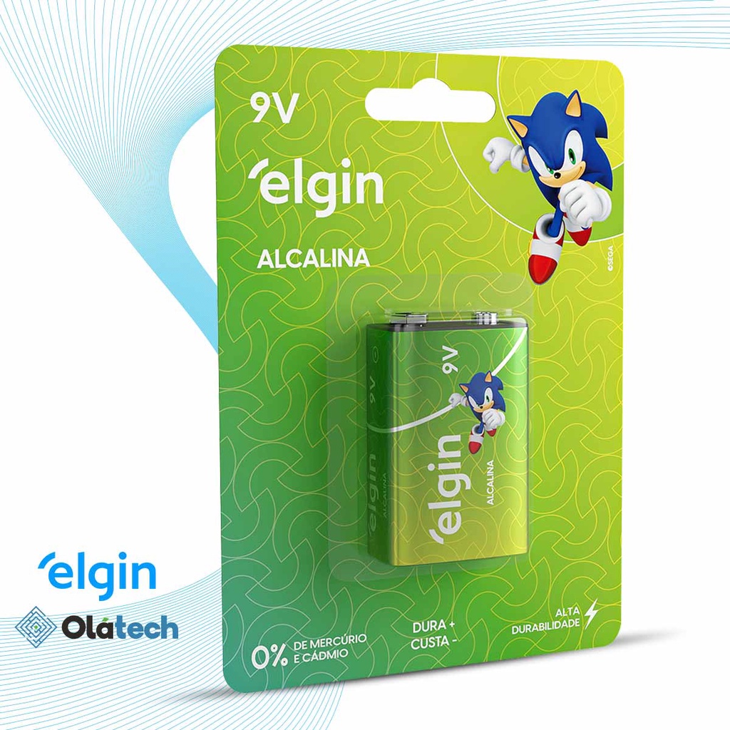 Pilha Bateria Alcalina 9V Elgin Longa Duração 9 Volts