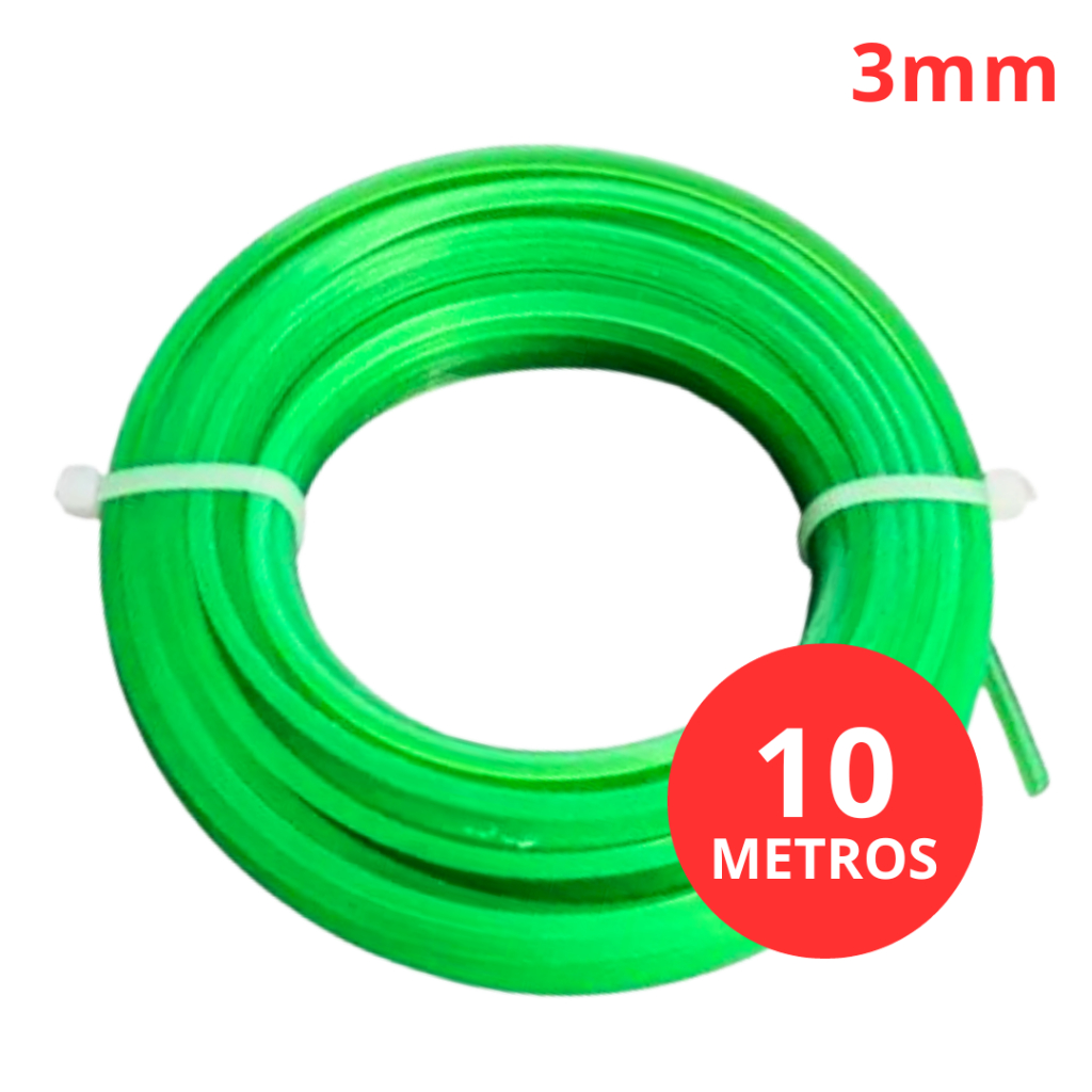 10 Metros Fio Nylon Quadrado 3mm para Roçadeira Aparador Grama Verde