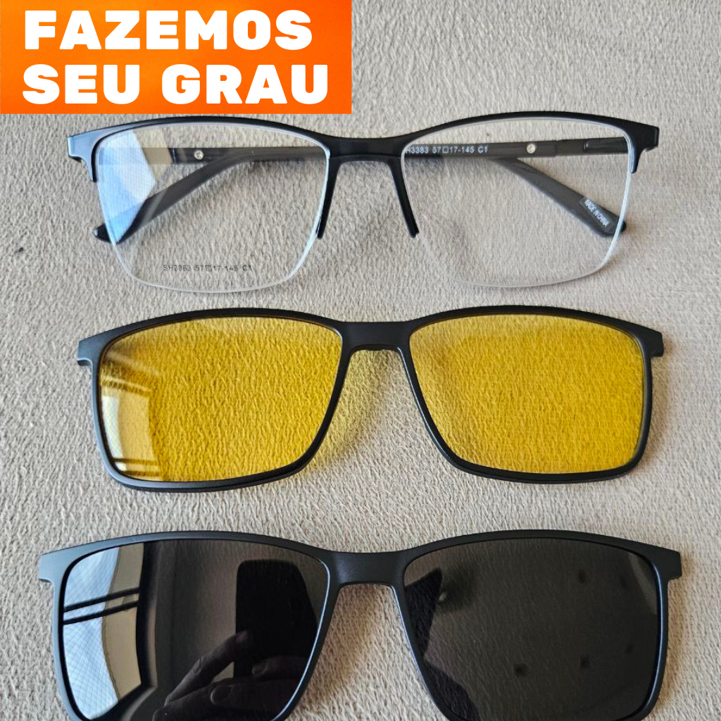 Armação para óculos clipon 3 em 1 Quadrado Masculino Polarizado metal quadrada fio de nylon sh3383