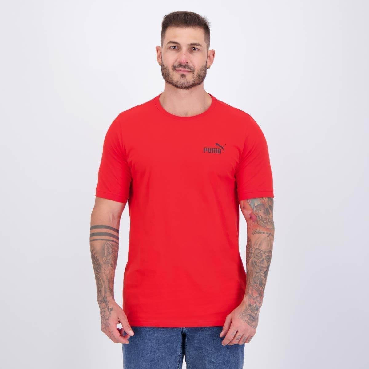 Camiseta Puma ESS Small Logo Vermelha e Preta