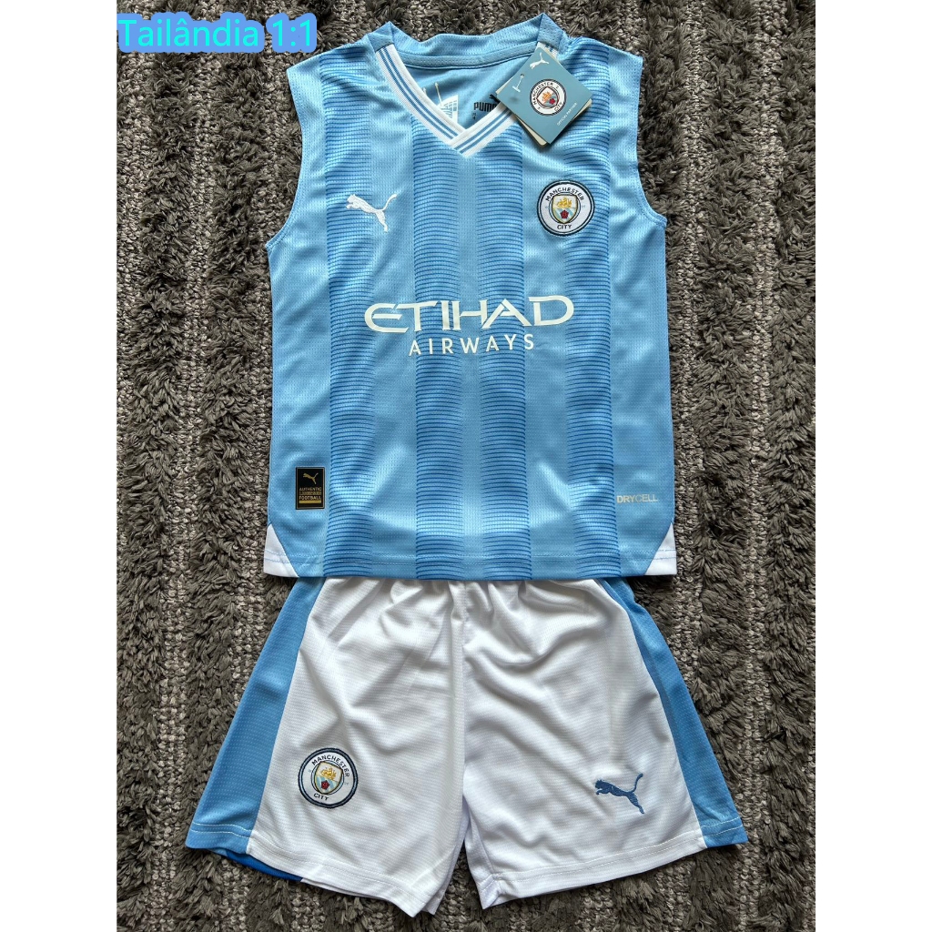 2023/2024 colete infantil Kit Kids camisa de time Manchester City Home Thai Versão 1:1