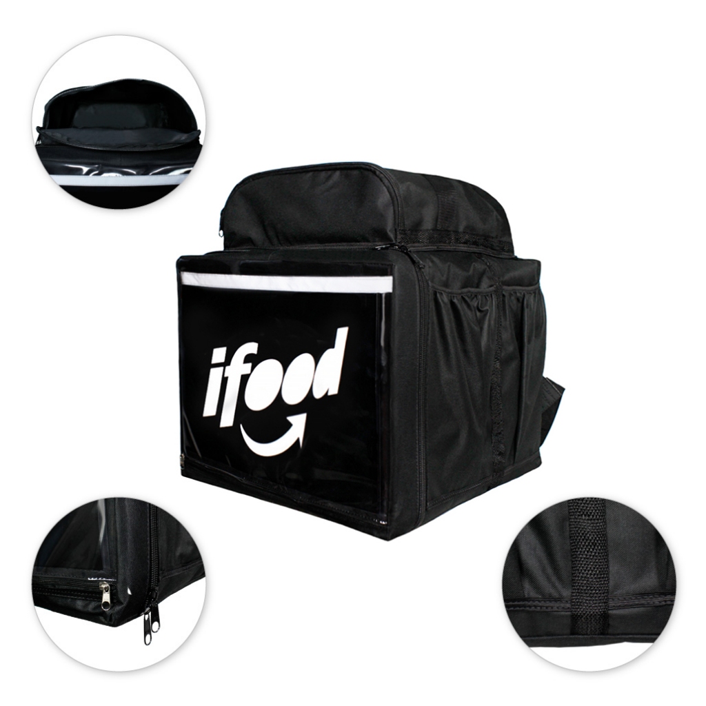 Bolsa Bag Mochila Motoboy Preta 45L Logo Ifood Preto