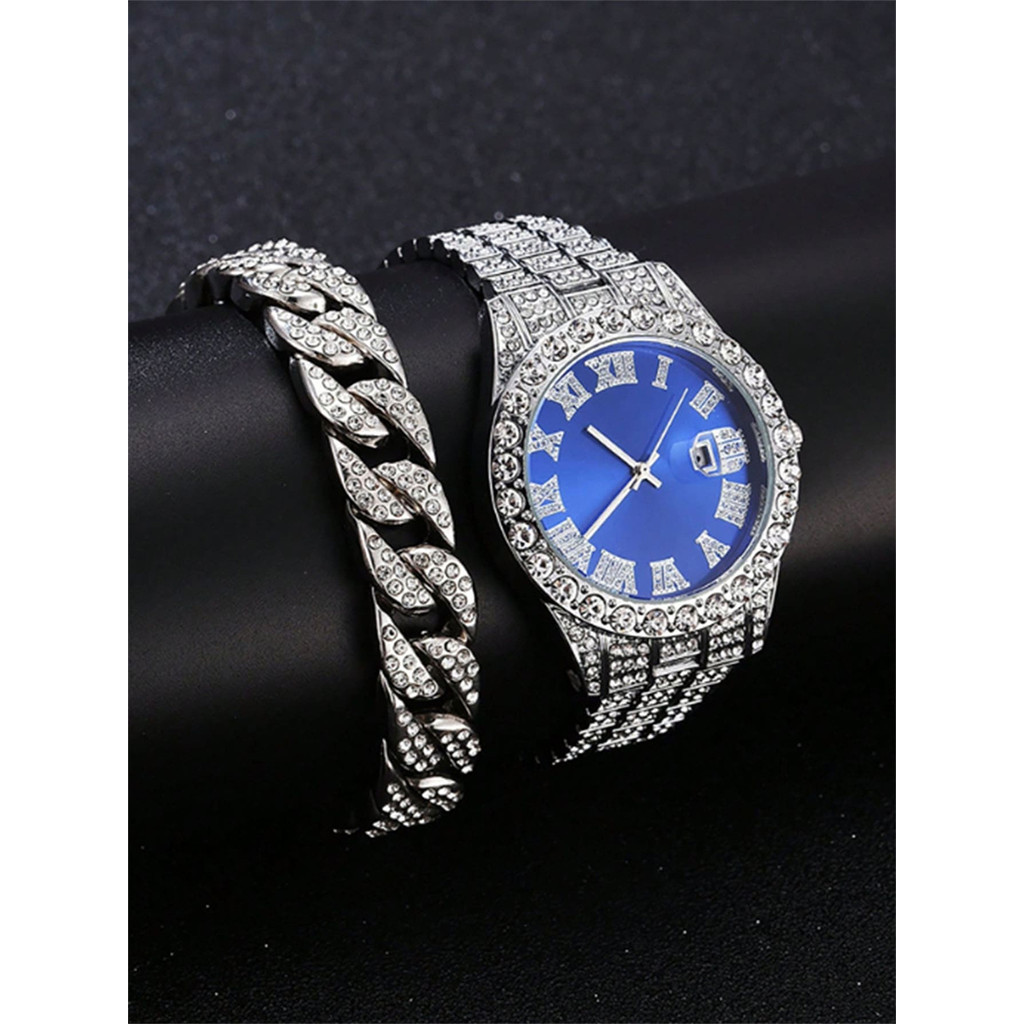 Relógio De Pulso Masculino De Luxo De Aço Inoxidável De Marca Superior Redondo Hip Hop À Prova D'água Namorado Presente