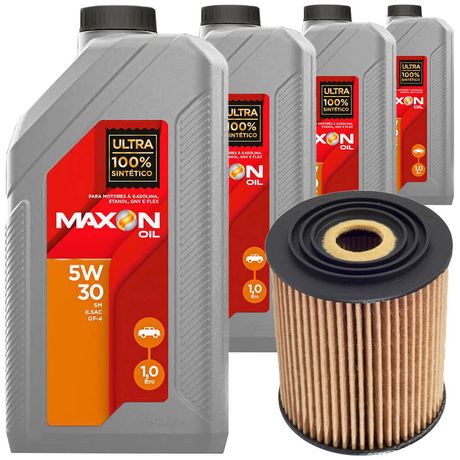 4 Óleo Sintético 5W30 Maxon e Filtro Óleo Tecfil Palio 1.6 1.8 Flex 2010 a 2017