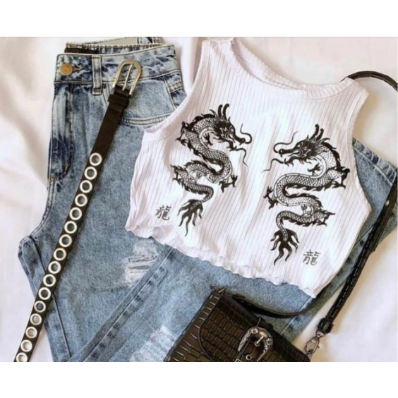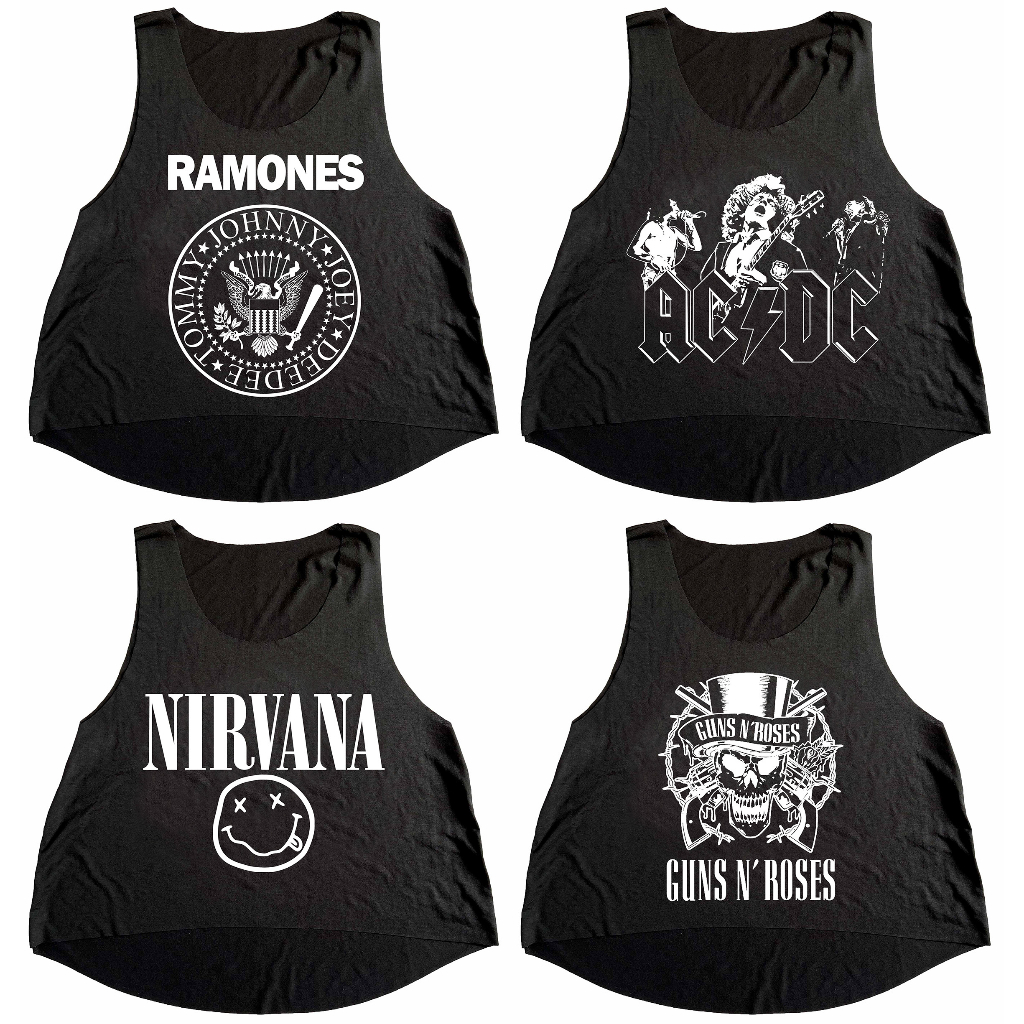 Cropped Preto Regata Camiseta Feminina Academia Rock