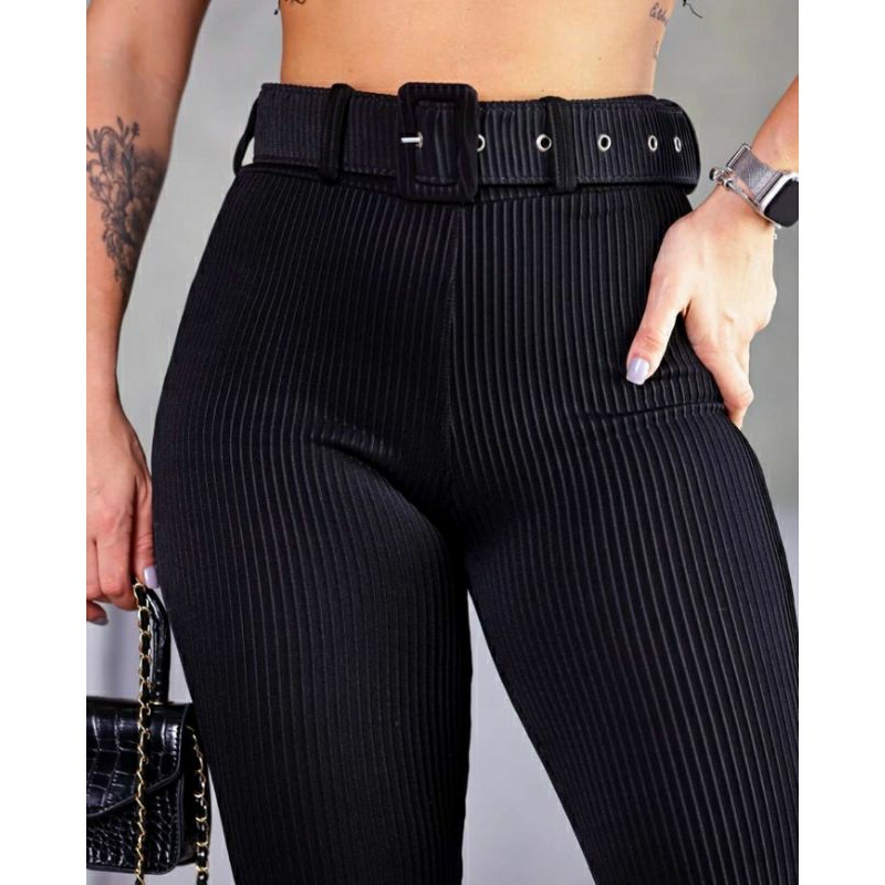 Calça Legging Feminina Skinny Leg Cintura Alta Canelada 3D Premium Nova Tendência Moda 2023