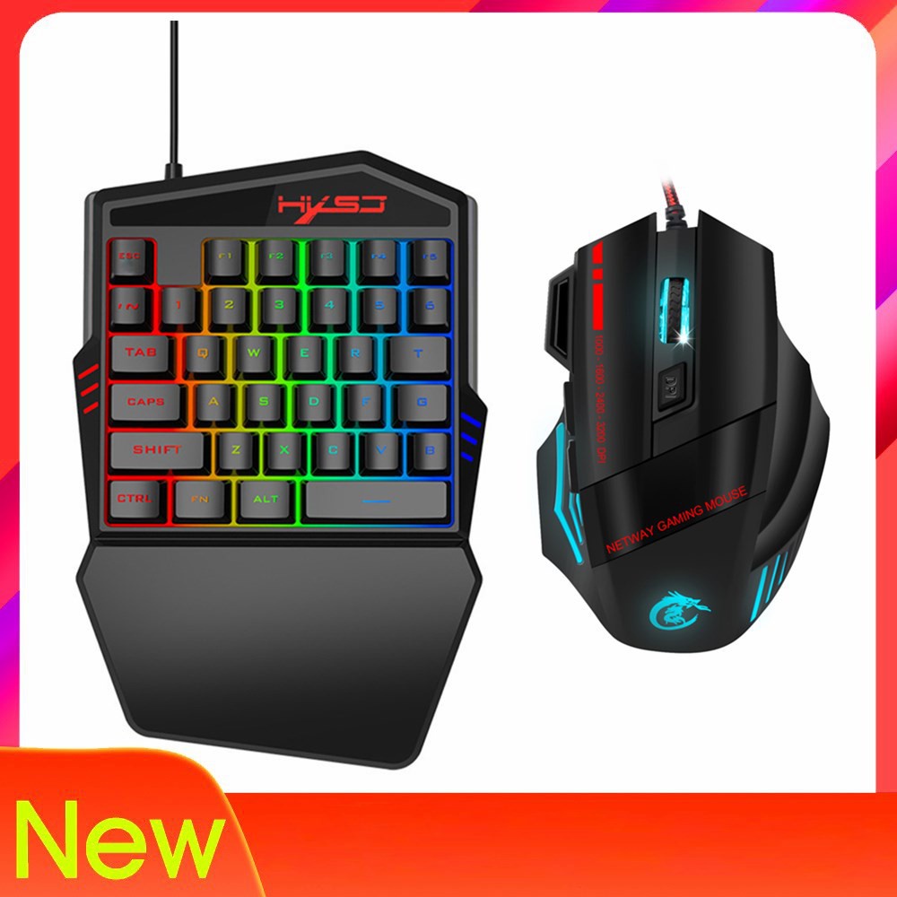Kit Teclado e Mouse Gamer Luminoso Ergonômico Teclado de Uma Mão