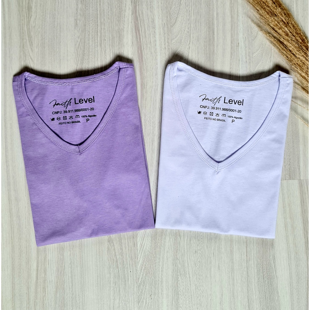 Kit 5 T Shirt Camiseta Blusa Blusinha Feminina Gola V Podrinha 100% Algodão Confort Premium