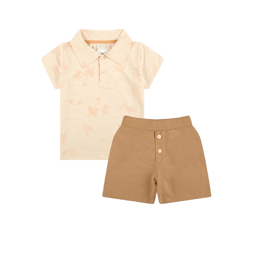 Conjunto Bebê e Infantil verão 2 Peças Camiseta Gola Polo e Bermuda
