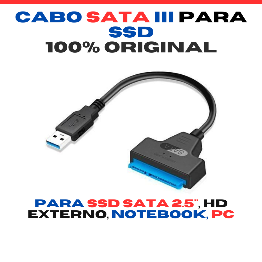 Cabo Usb Adaptador para ssd Sata 2.5", Hd Externo, Notebook, Pc