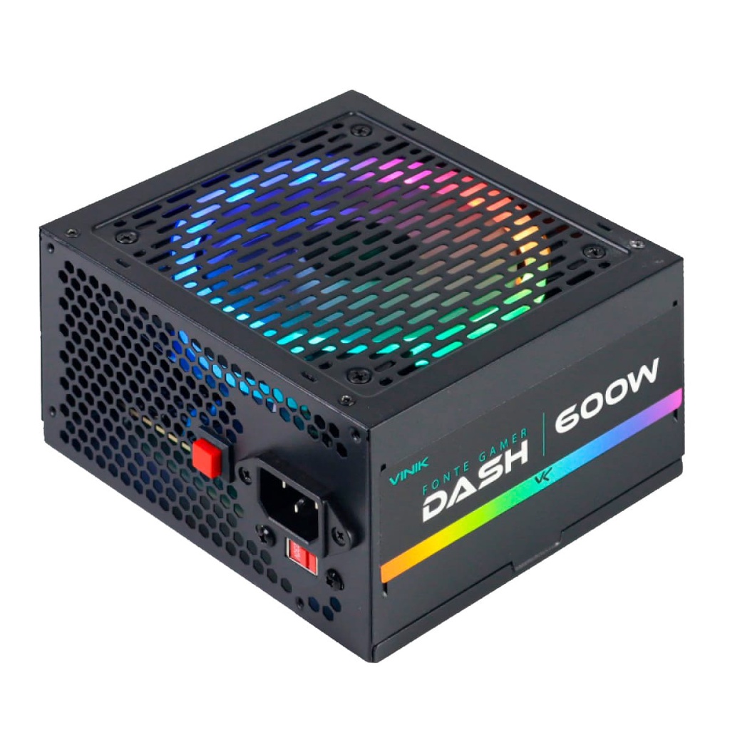 Fonte Gamer Vinik Dash 600w Bivolt com LED RGB