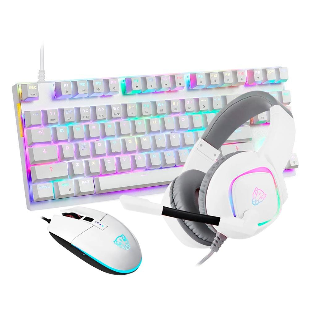 Kit Gamer Motospeed White Storm Branco - Teclado Mecânico CK82 + Headset G750, 7.1 + Mouse V50, 4000DPI - RGB