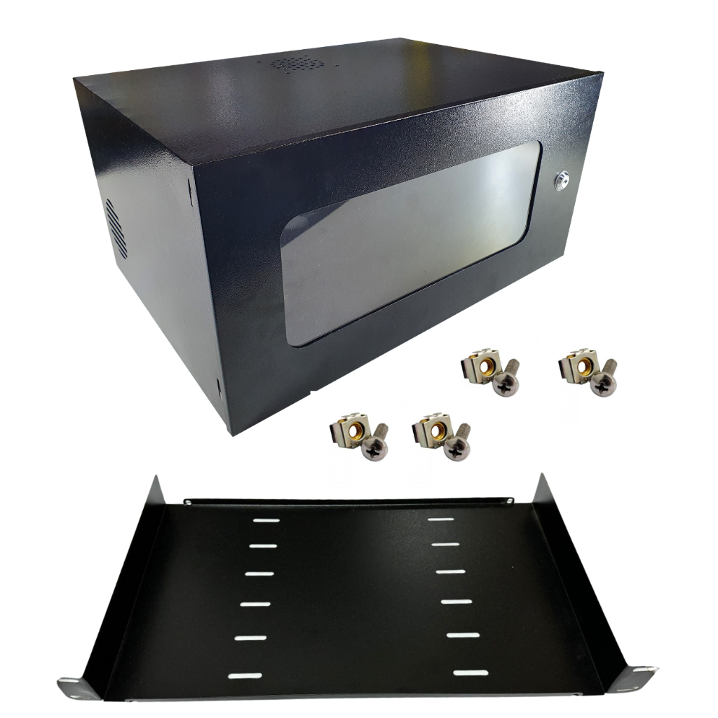 Mini Rack Padrão 19" - 5U X 350mm Porta Ventilada + Bandeja Fixa para Rack Padrão 19'' 1U x 250mm