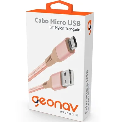 Cabo Micro USB Geonav, 1m, Nylon Trancado, Rose Gold, ESMIRG