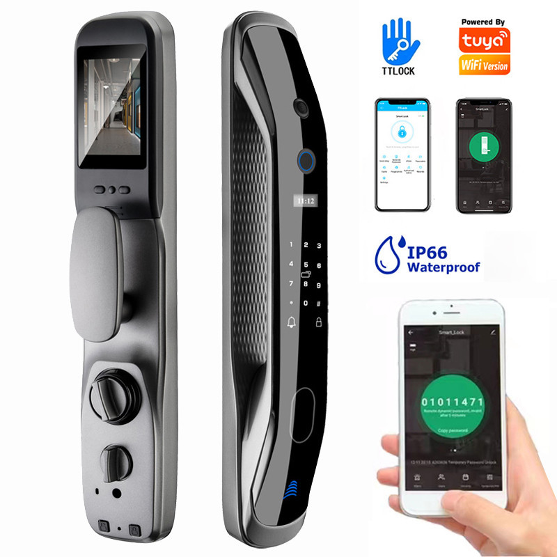 Intelar WIFI APP Fechadura de porta com impressão digital Fechadura de porta de entrada sem chave, fechaduras de porta com teclados, maçaneta, código de acesso, impressão digital e desbloqueio com chave Duty Free - Em estoque