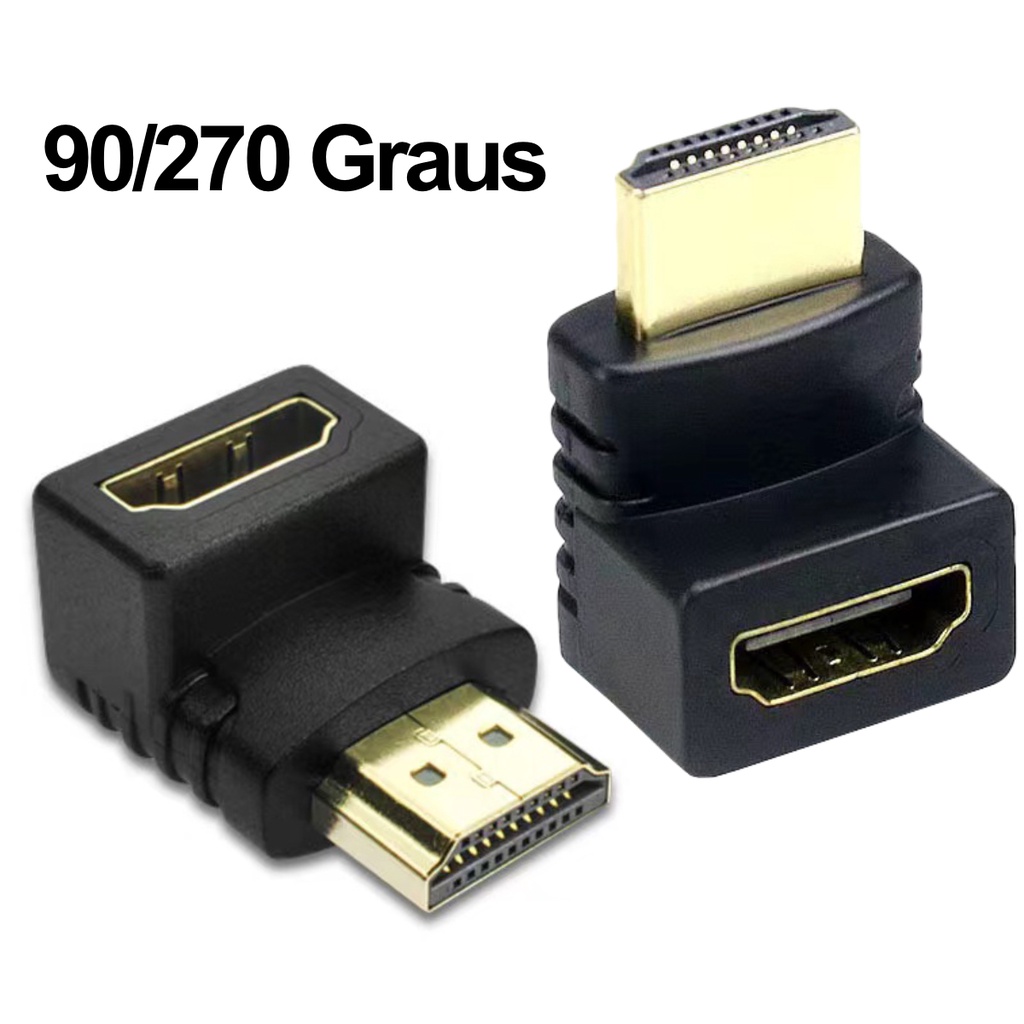 Adaptador Plug Hdmi 90 e 270 Graus Em L Macho Fêmea 1.4 Para Tv Painel