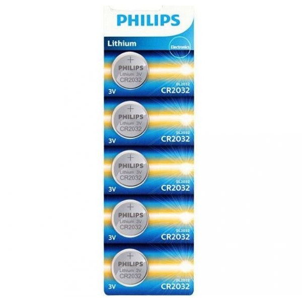 Pilha CR2032 3V Philips Bateria Moeda kit 05 unidades 01 cartela