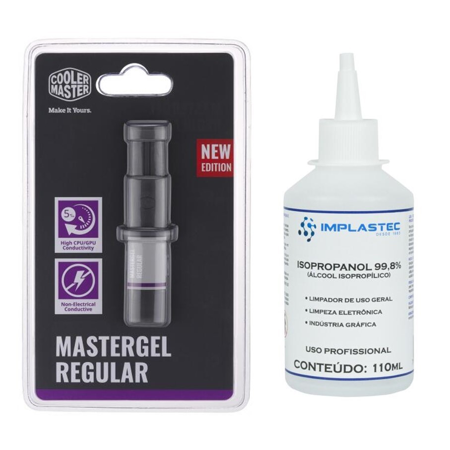 Kit Pasta Térmica Cooler Master MasterGel Regular 4G 5.0w/mk + Cleaner 110ML Limpeza de PC CPU Resfriamento Videogame