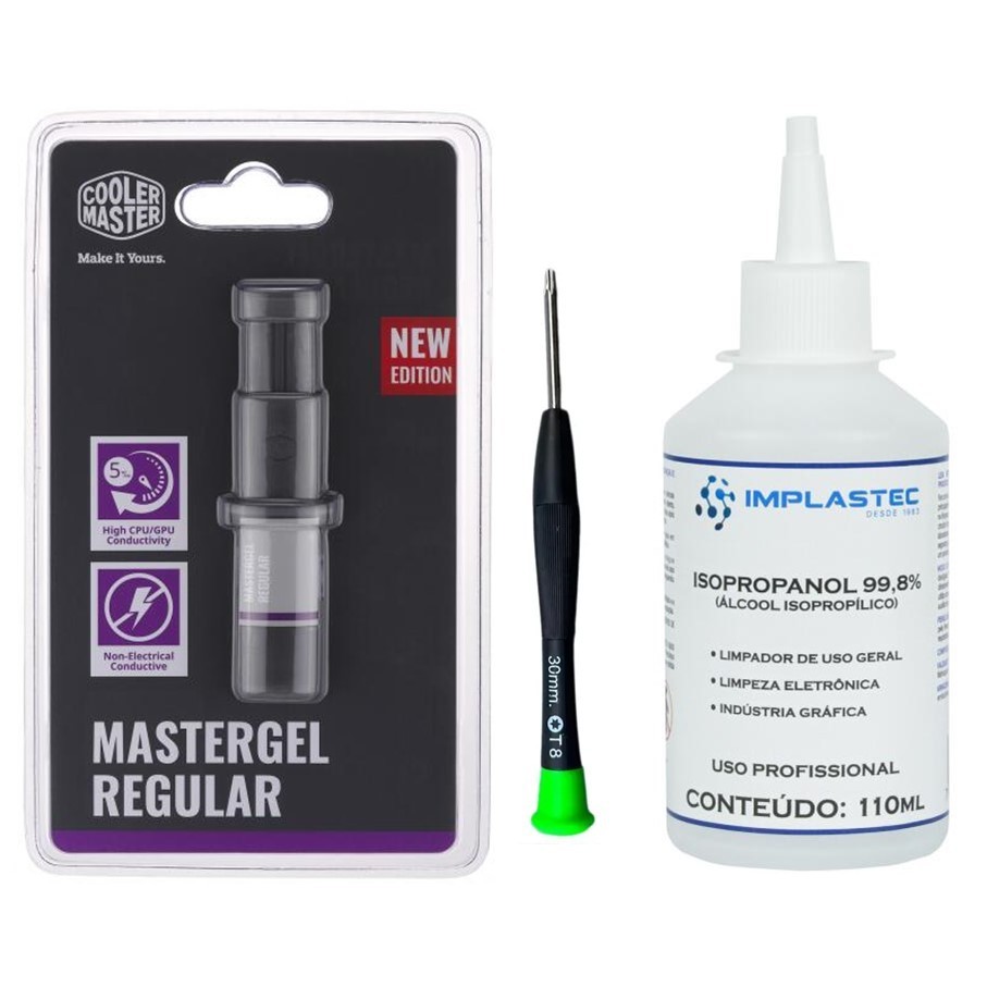 Kit Pasta Térmica Cooler Master MasterGel Regular 4G 5.0w/mk + Torx T8 + Cleaner 110ML Limpeza de PC CPU Resfriamento Videogame