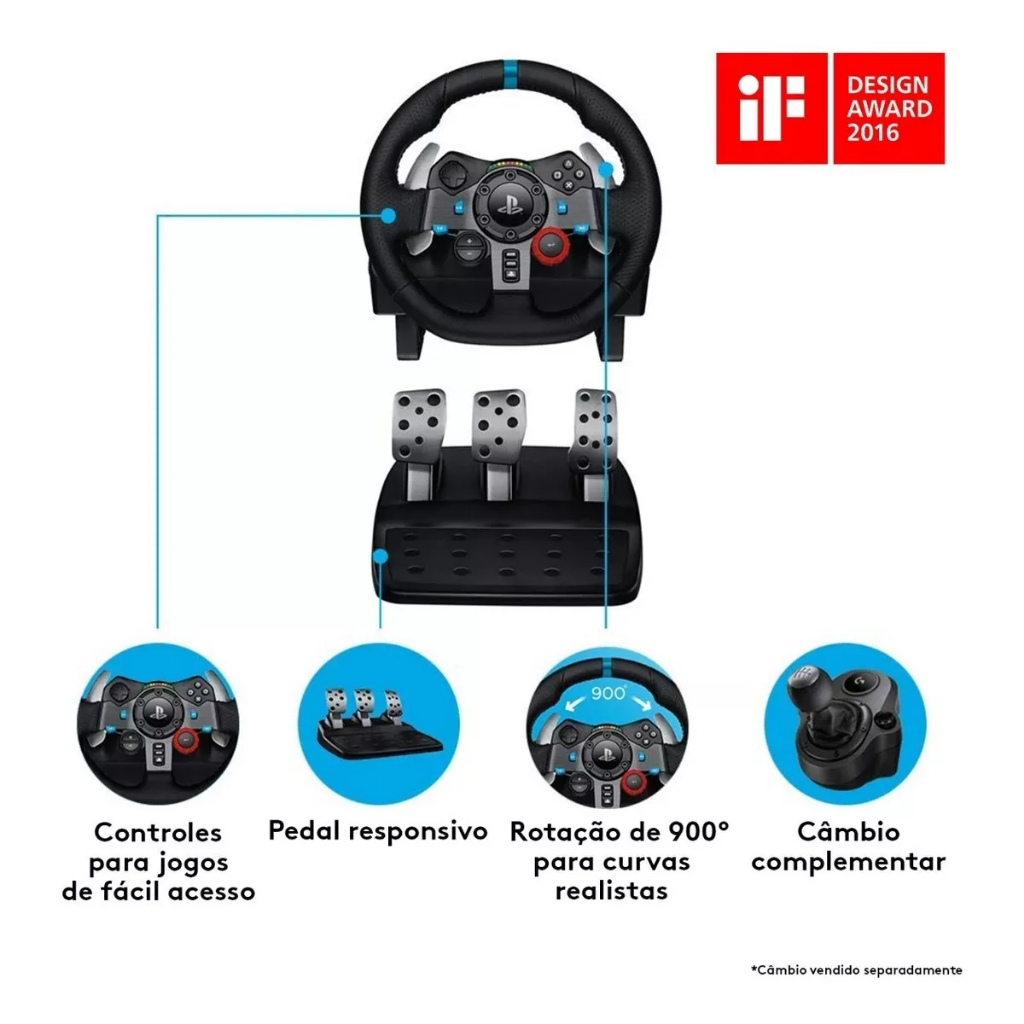 Kit Volante + Acelerador Logitech G29 Driving Force para PS3/PS4/PS5/PC + Câmbio G29