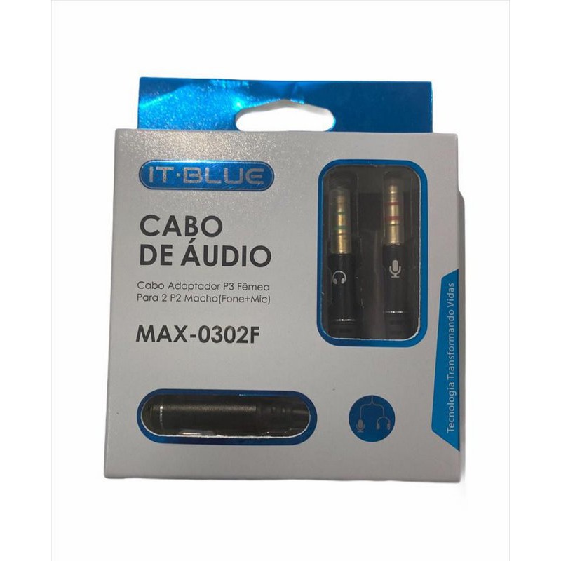 Cabo de áudio P3 Fêmea para 2 P2 Macho MAX-0302F IT Blue