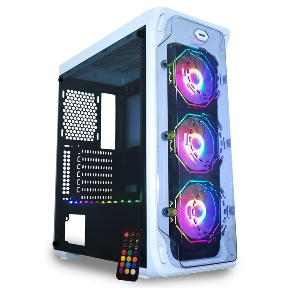 Gabinete Gamer K-Mex White Trooper, 3x Fan ARGB, Lateral em Acrílico, Branco - CG-06B1