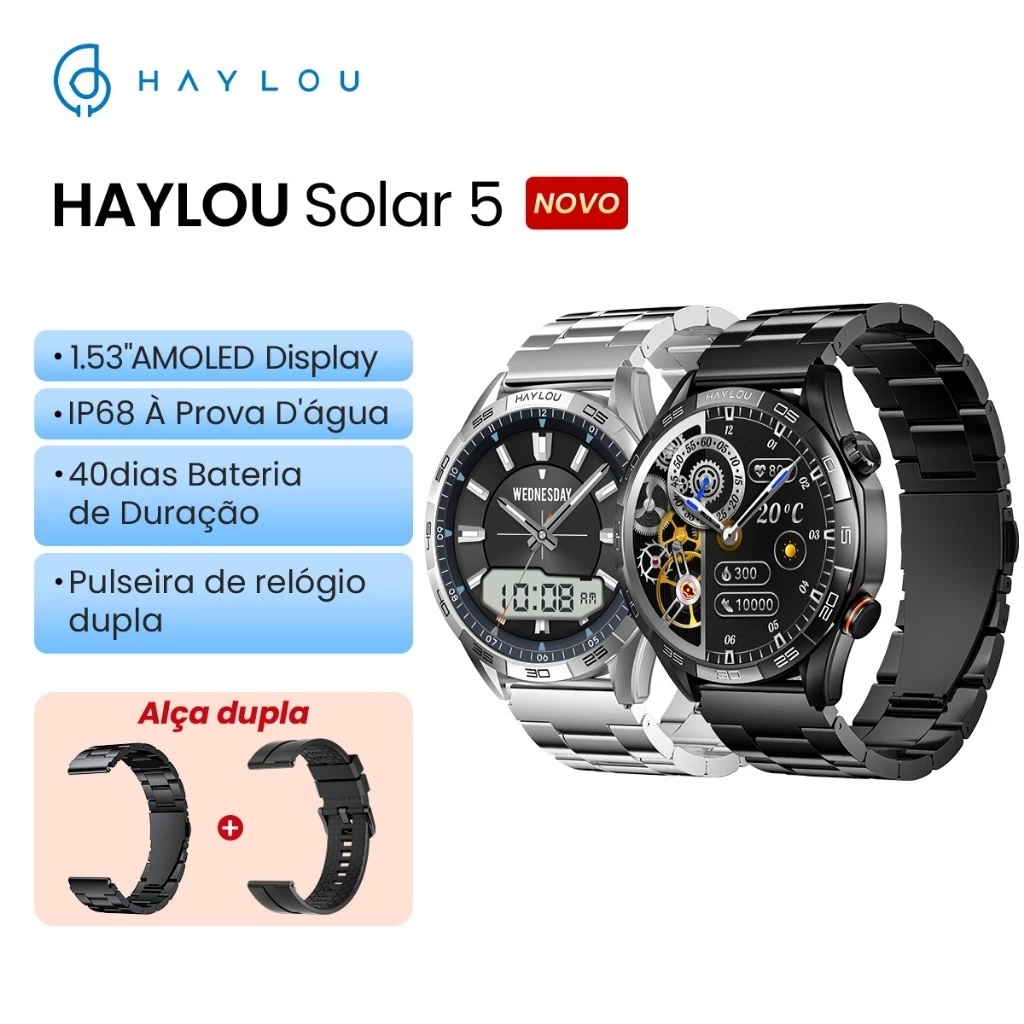 Smartwatch Haylou Solar 5, Tela Amoled 1,58 Ip68 À Prova D'água, Chamadas Bluetooth, Lançamento 2025