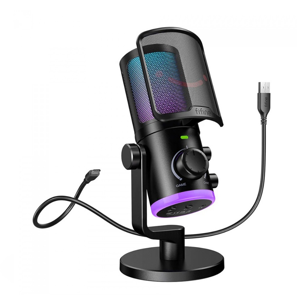 Microfone Gamer Fifine Ampligame Am6 Condensador RGB Usb Preto