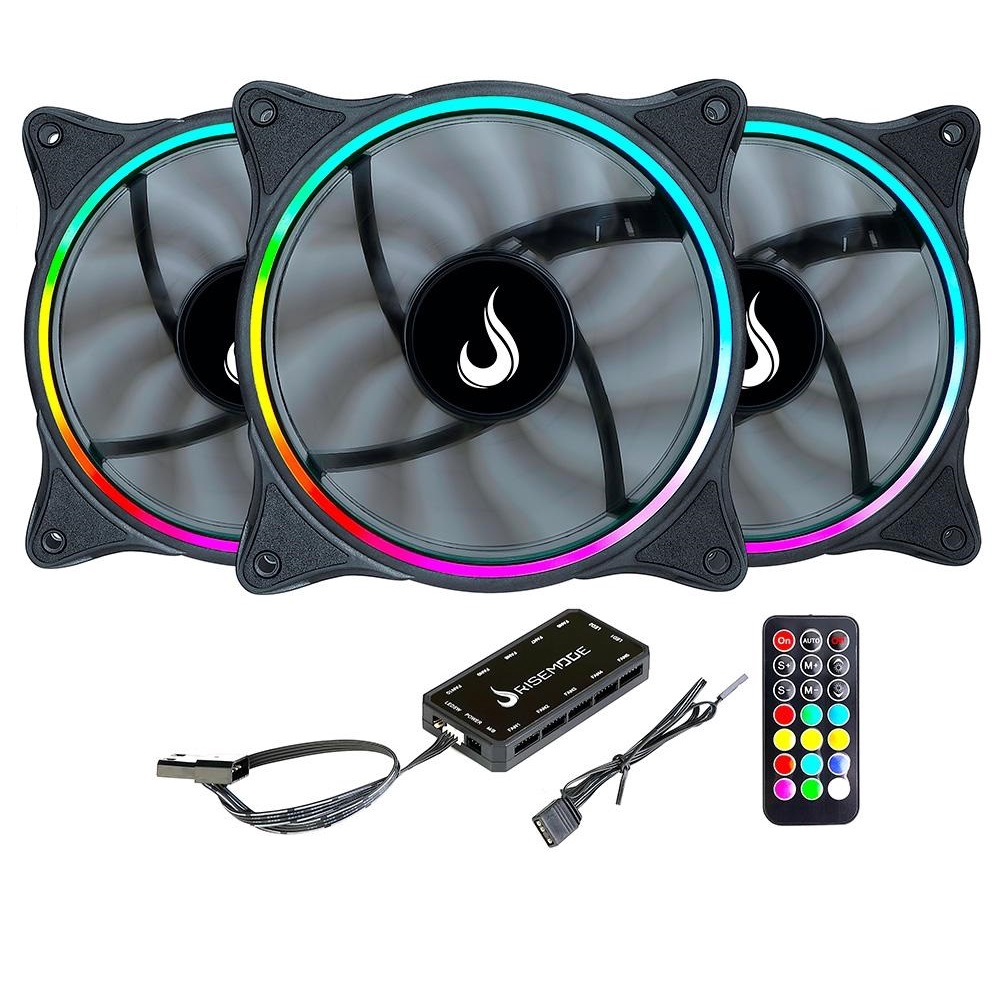 Kit com 3 Ventoinhas Rise Mode X Led Rainbow, 120mm, Preto - RM-XLD-01-RBW