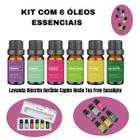 KIT Com 6 Óleos Essenciais Lavanda Alecrim Gerânio Capim-limão Tea Tree e Eucalipto