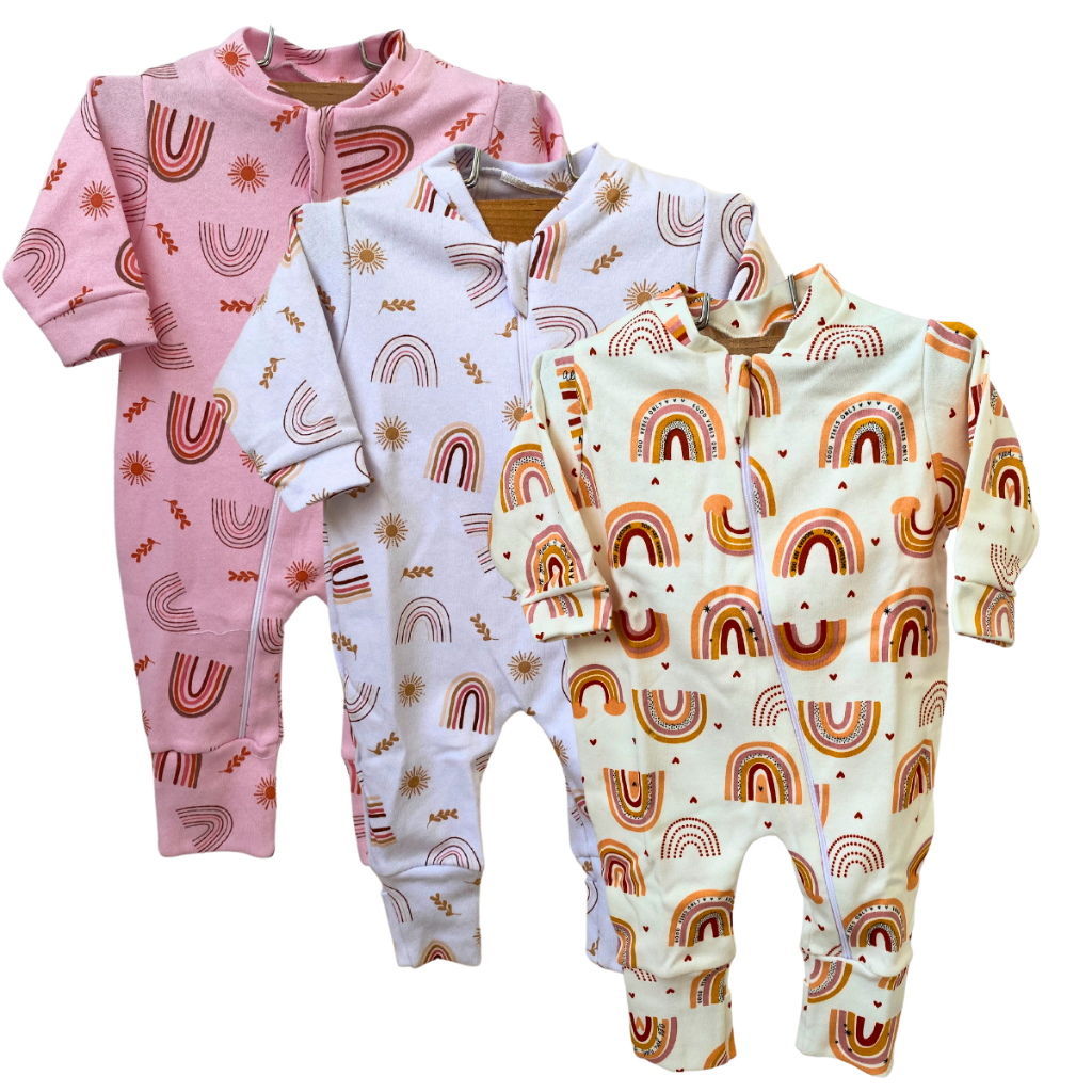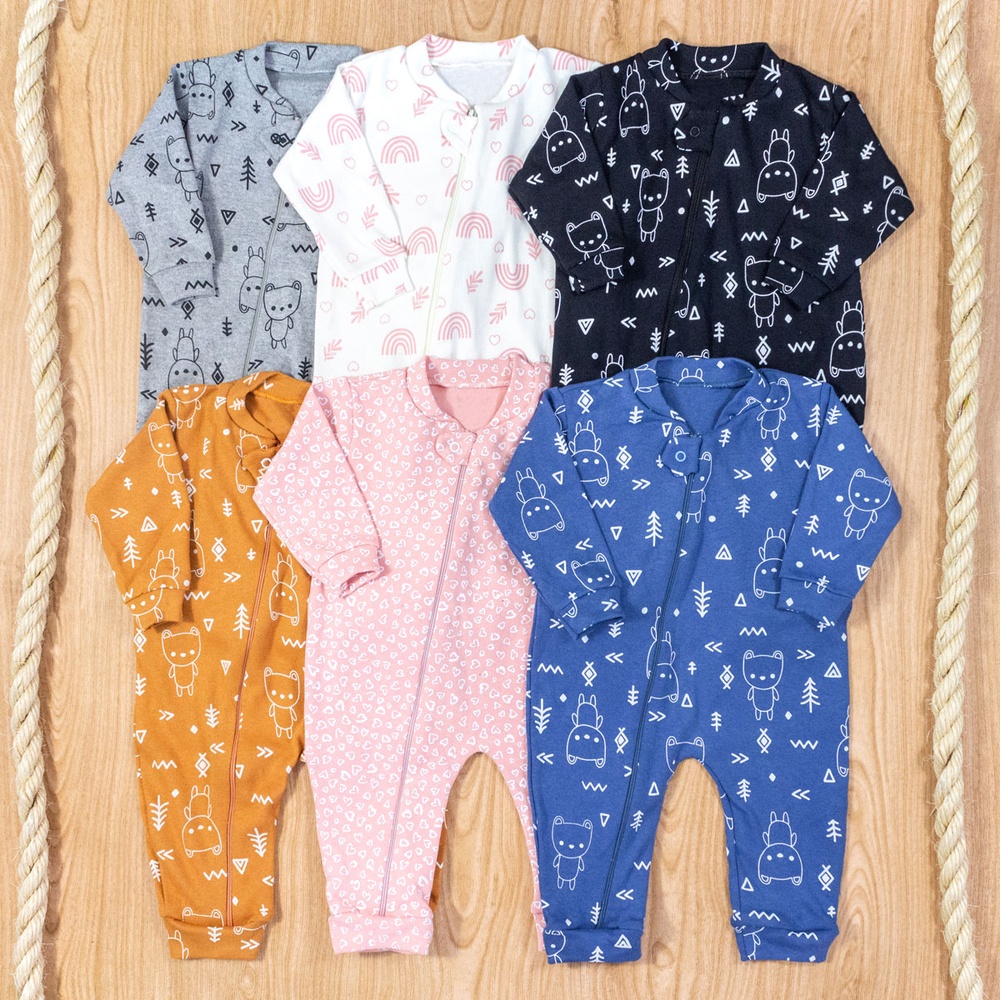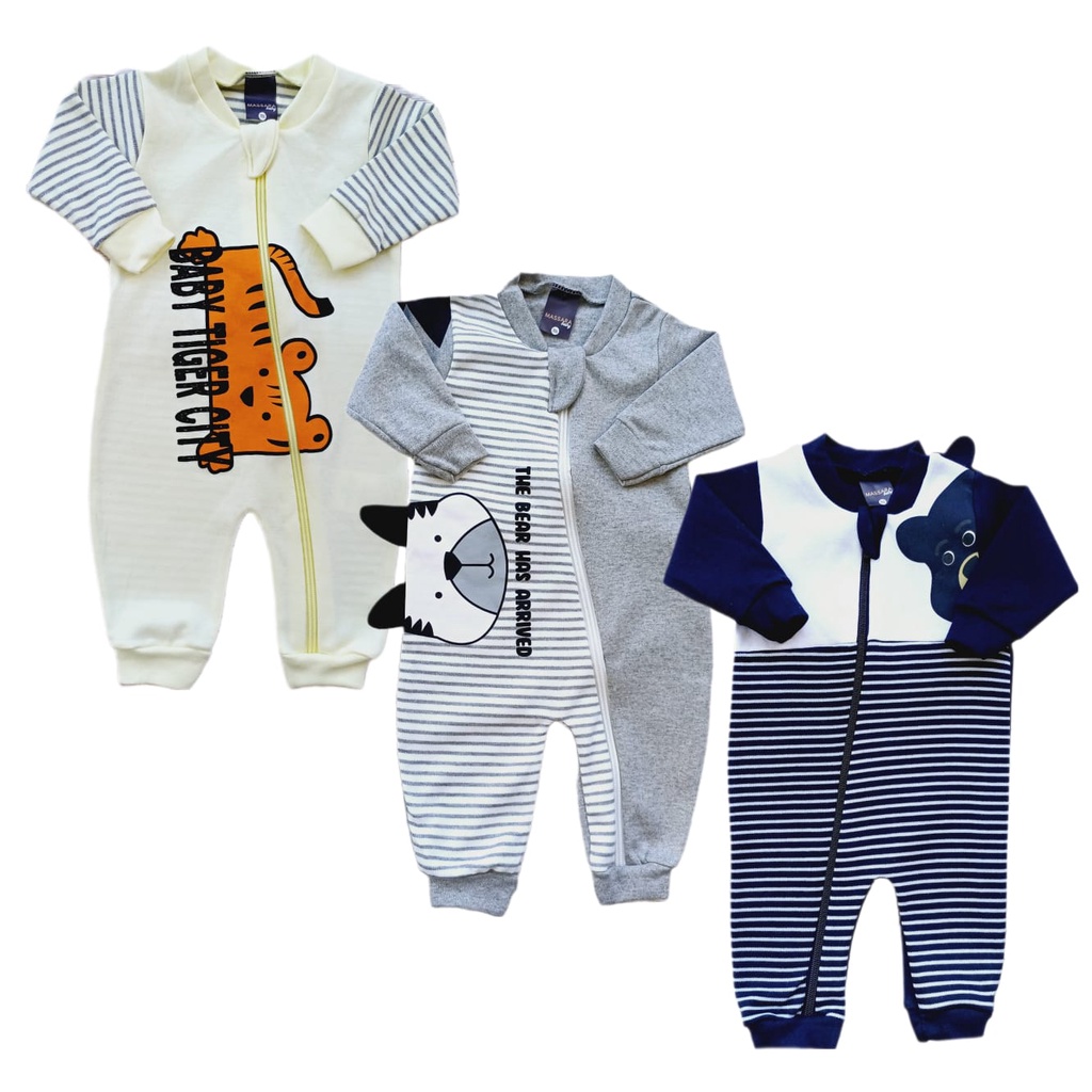 Kit 3 Macacão Bebe Suedine Com Ziper 100% Algodão Estampado Fofinho