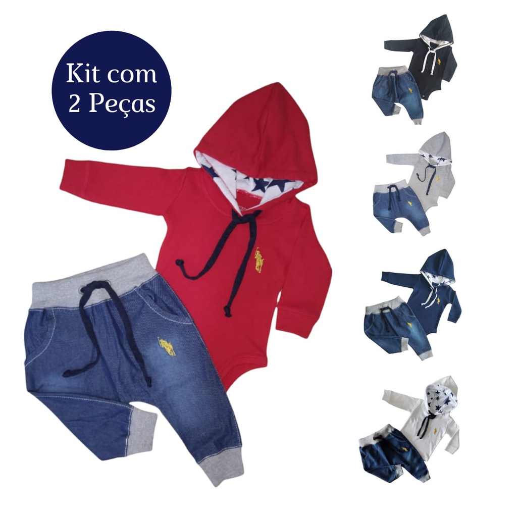 Kit 2 Peças sendo 1 Body suedine com Capuz e 1 Calça Jeans com Bordado Natal Ano Novo Presente