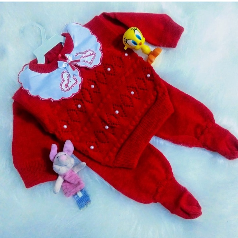 Conjuntos De Agasalho Para Bebê Blusa E Calça De Lã Sem Pezinho Com Linda Gola De Renda Para eles e elas .