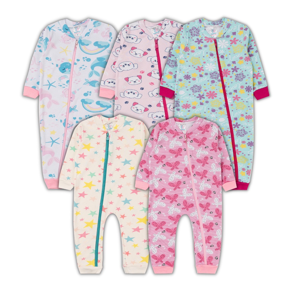 Kit 5 Macacão Bebê Abertura Ziper Menina Suedine