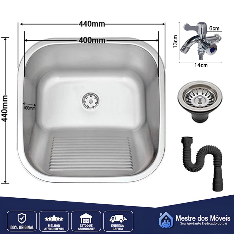 Tanque Lavanderia 44×44/55*45cm Com Válvula Aço Inox 201 Aplicação cozinha e varanda e banheiro