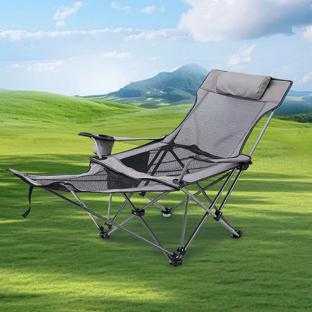 Cadeira de Praia Dobrável Reclinável Portátil – Espreguiçadeira 2 em 1 para Jardim, Camping e Área Externa