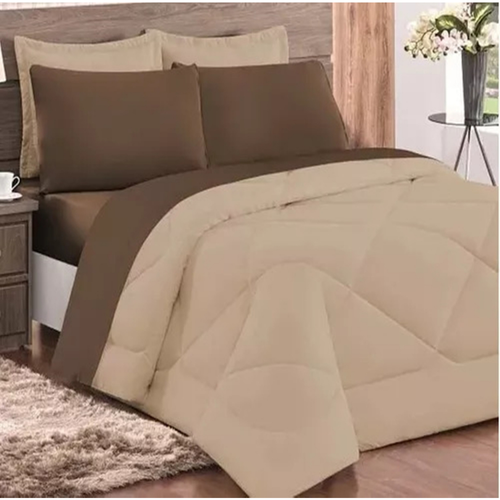 Kit Edredom Casal Queen Dupla Face 03 Peças Avelã