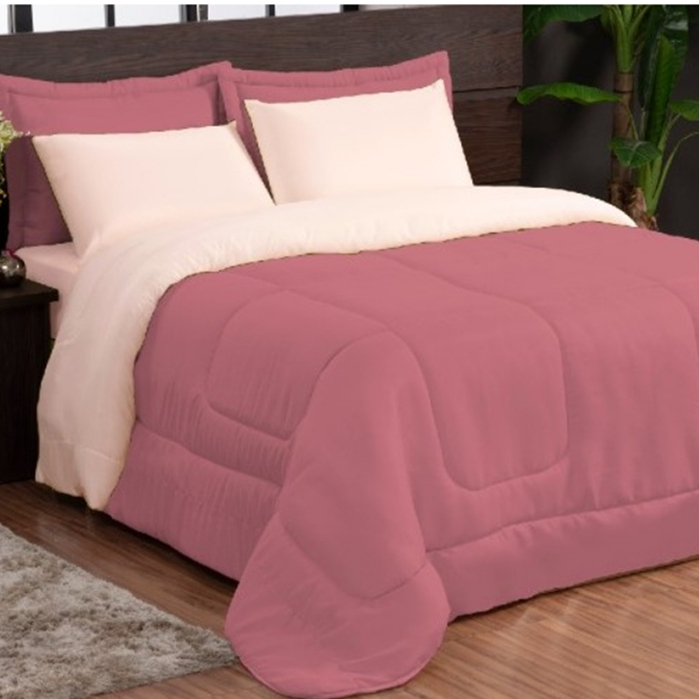 KIT TERNURA EDREDOM CASAL QUEEN DUPLA FACE COM 03 PEÇAS PROMOÇÃO ! - ( ROSE /PALHA )