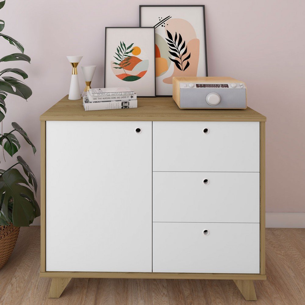 Armário para Escritório Lugano 1 Porta 3 Gavetas Olmo/branco - Artany Móveis