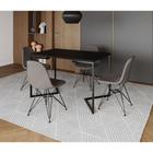 Mesa Jantar Industrial Retangular Preta 120x75 Base V com 4 Cadeiras Estofadas Grafite Aço Preto