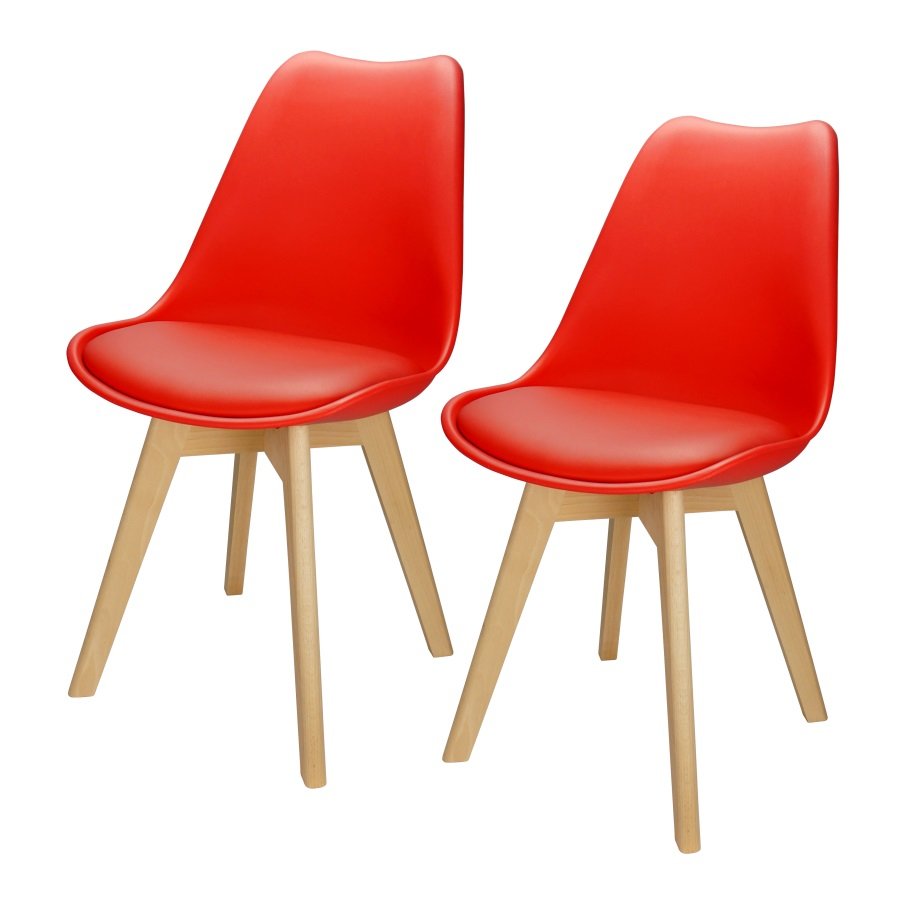 Kit 2 Cadeiras Charles Eames Leda Luisa Saarinen Design Wood Estofada Base Madeira - Vermelha