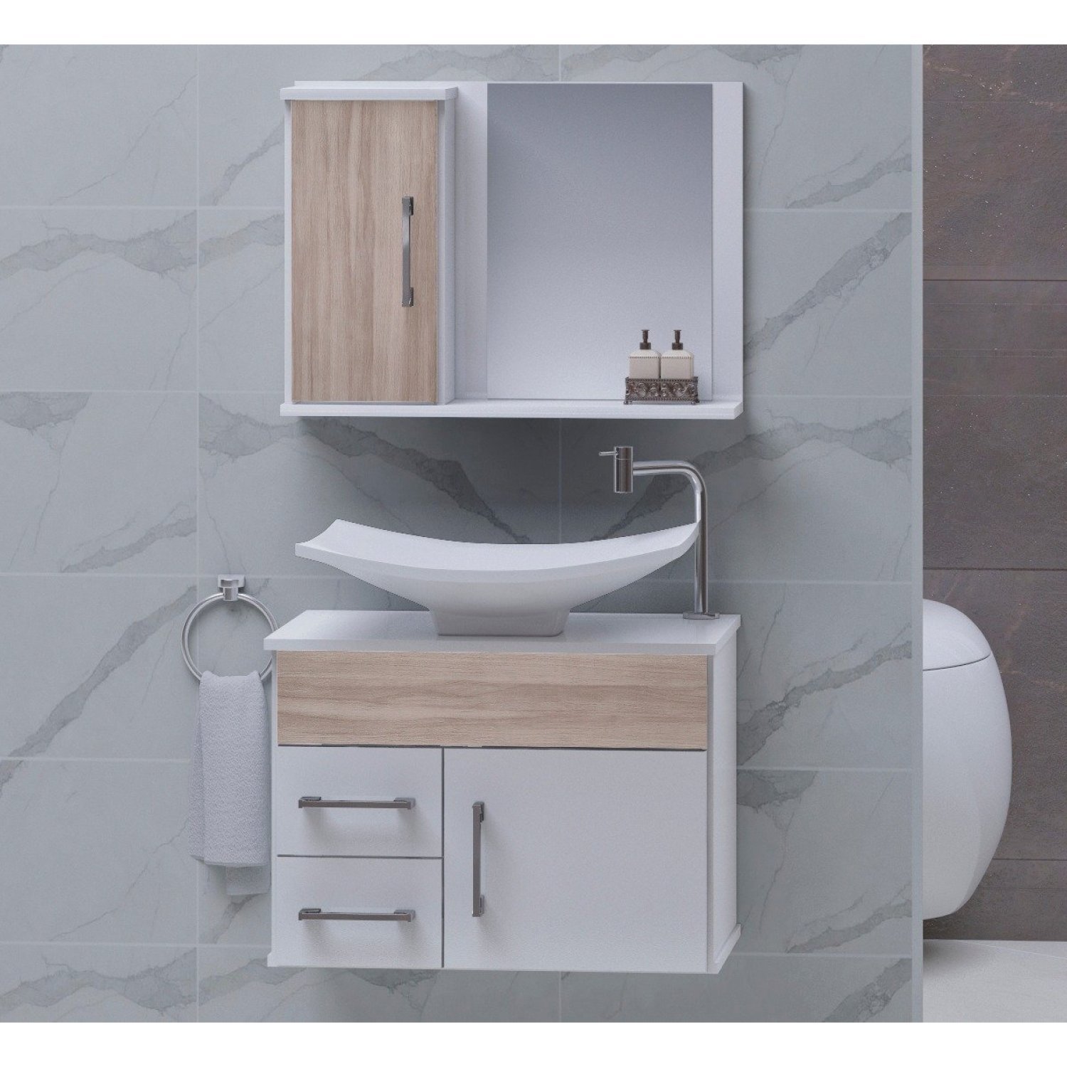 Conjunto New Stilo MDF gabinete para banheiro com cuba e espelheira.