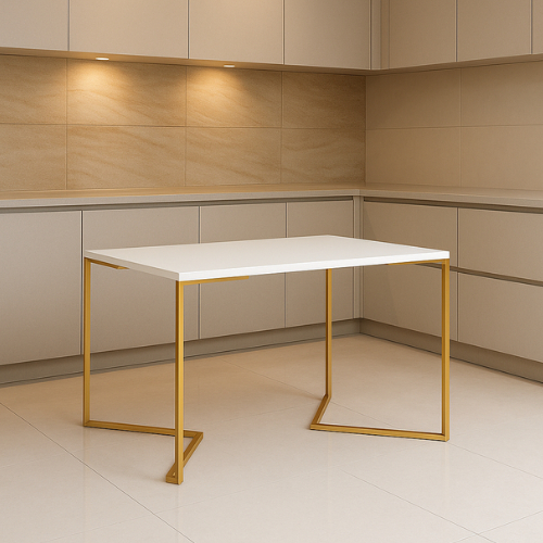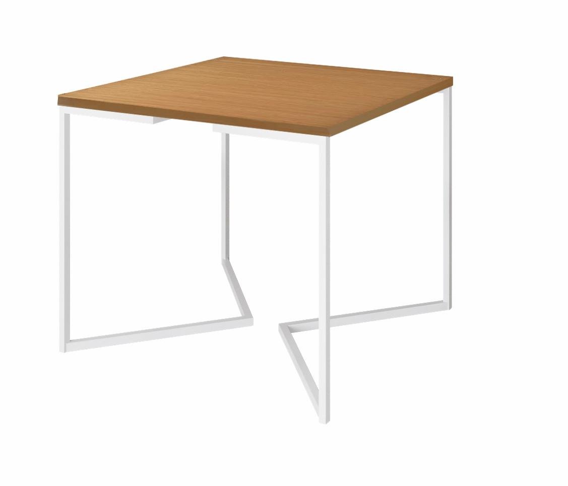 Mesa de Jantar Industrial Base De Ferro Branco em V Tampo 90x90 Canela