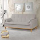 Sofá Cama Living Reclinável Veludo Bege Pés Madeira Maciça + 2 Almofadas