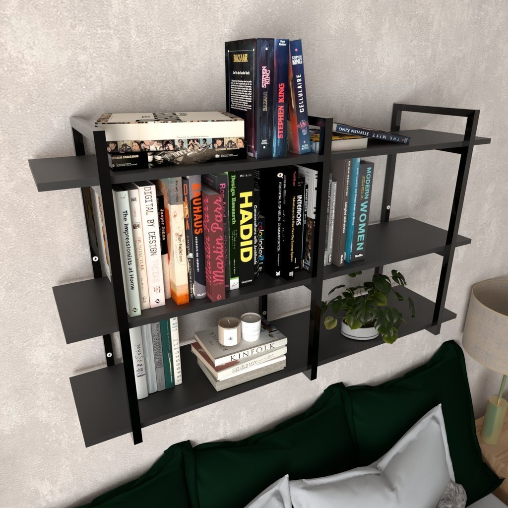 Prateleira industrial moveis escritorio quarto estante infantil livros preto ferro e madeira E-nichos