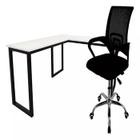 Mesa Branca para Escritório em L Angular com Cadeira Diretor Tela Mesh