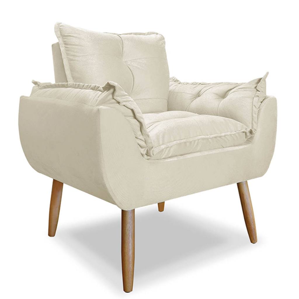 Poltrona Opala Decorativa Pés Palito Suede Cores + Puff Cores