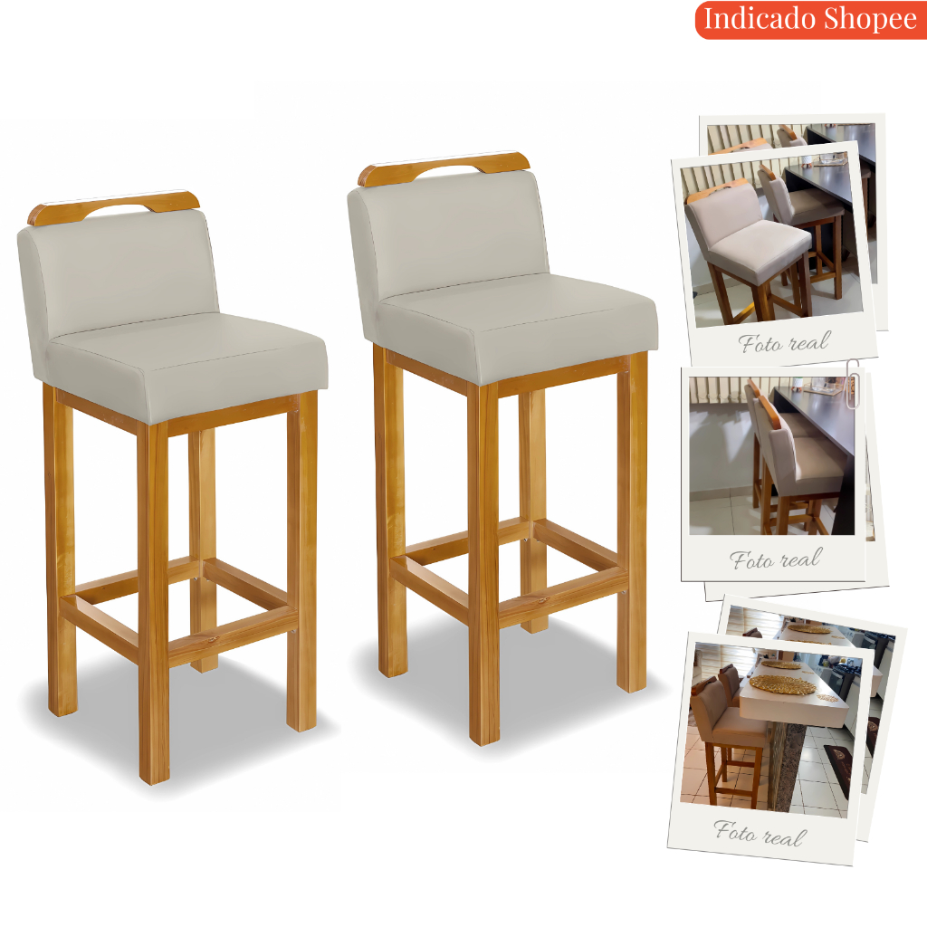 Kit 2 Banqueta Alta Decorativa Com Encosto Para Balcão e cozinha Base De Madeira
